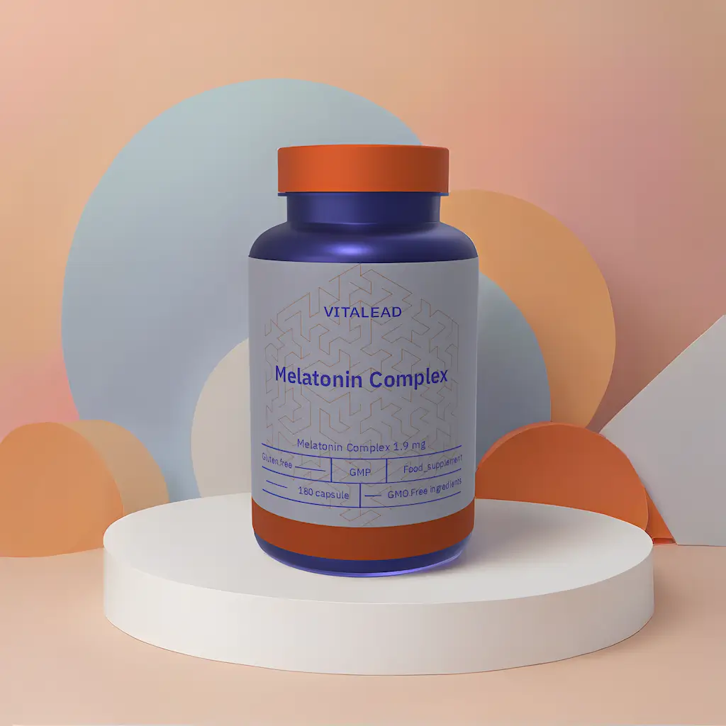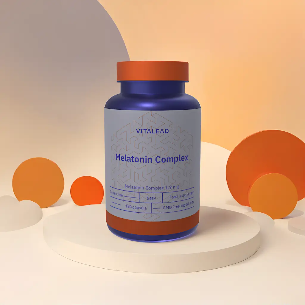 Vitalead’s Melatonin Complex 1.9 mg blends plant-based melatonin with calming herbal extracts to gently support healthy sleep cycles. This synergistic formula helps shorten sleep onset time, enhance relaxation, and encourage deeper rest without grogginess. Ideal for individuals with irregular schedules, jet lag, or difficulty unwinding. Non-GMO, cruelty-free, and made with eco-friendly sourcing for a sustainable wellness choice.