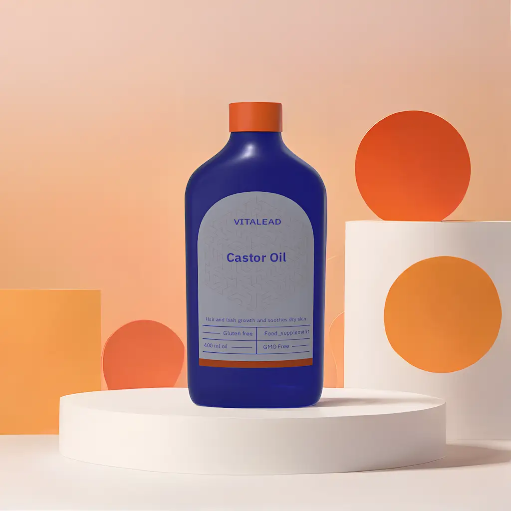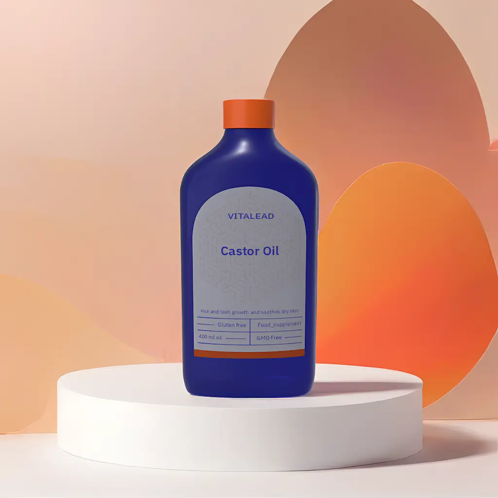 Vitalead Organic Castor Oil – a thick, nutrient-dense oil traditionally used for hair growth, lash conditioning, and skin healing.