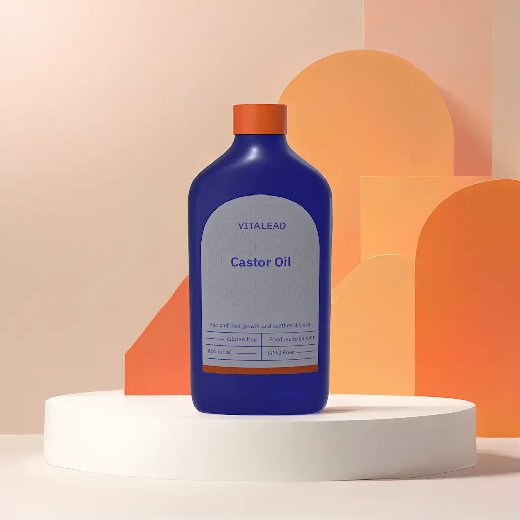 100% Pure Organic Castor Oil (Ricinus communis) – cold-pressed, non-GMO, cruelty-free.