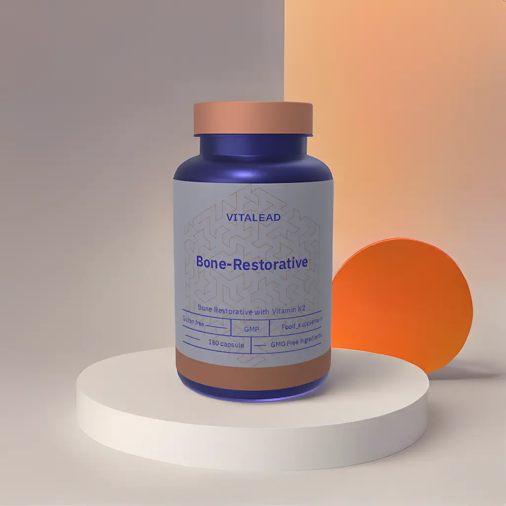 Vitalead’s Bone Restorative with Vitamin K2 is a premium blend crafted to reinforce skeletal strength and long-term bone density. This formula synergizes calcium for structure, magnesium for flexibility, vitamin D3 for absorption, and vitamin K2 to direct calcium into bones rather than arteries. Designed for individuals concerned with osteoporosis, aging, or high-demand lifestyles, this restorative complex provides complete bone nourishment. Sustainably formulated with eco-conscious practices and free of artificial additives.