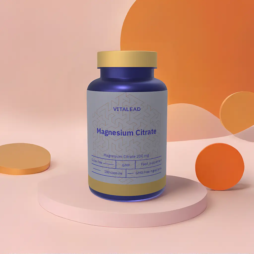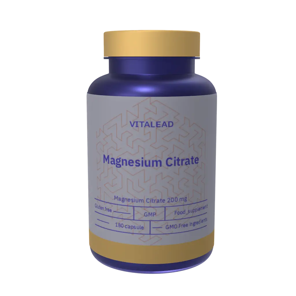Vitalead Magnesium Citrate 200 mg is a well-absorbed form of magnesium ideal for relieving muscle tension and promoting relaxation. It also supports digestive function and helps regulate energy metabolism, making it a versatile daily supplement.