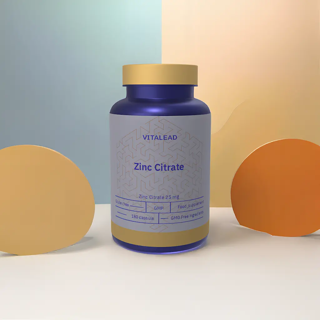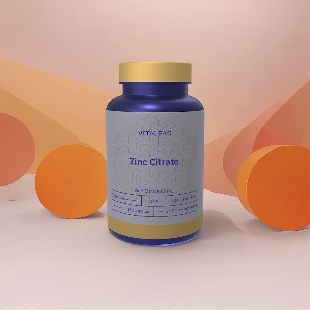 Vitalead Zinc Citrate 25 mg provides highly absorbable zinc to strengthen immunity, promote clear skin, and support hormonal balance. Zinc also plays a role in enzymatic activity, wound repair, and cognitive function, making it vital for whole-body health.